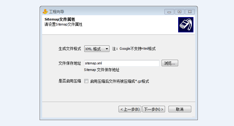 2.设置要生成的网站地图类型,可生成XML HTML TXT三种格式